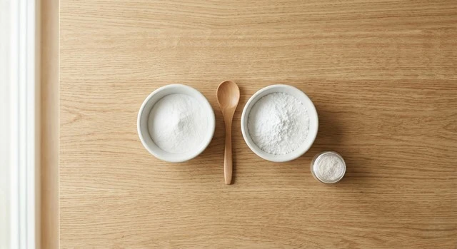 Dosage : 1 cuillère à café de bicarbonate + 1 cuillère à café de sucre glace. Mélangez soigneusement jusqu’à ce que les deux poudres soient parfaitement homogènes — elles doivent être visuellement indistinguables.